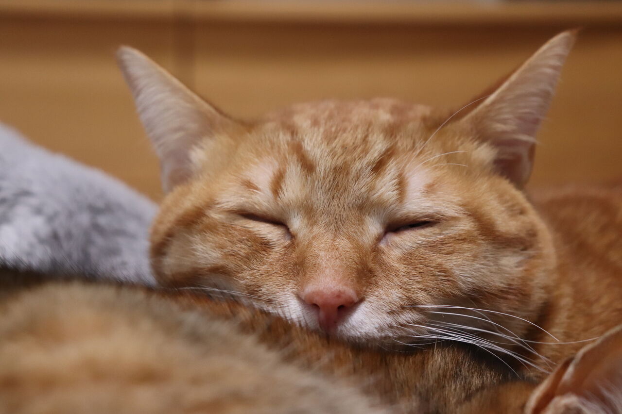 枕にされちゃってる猫