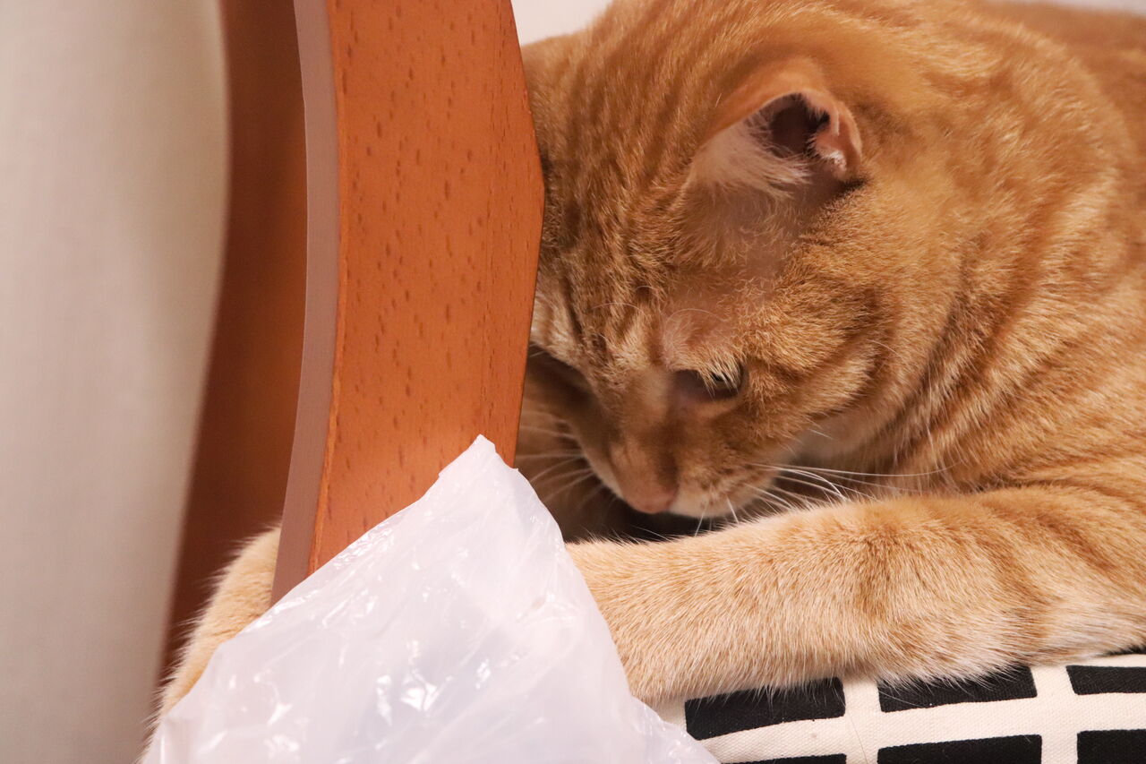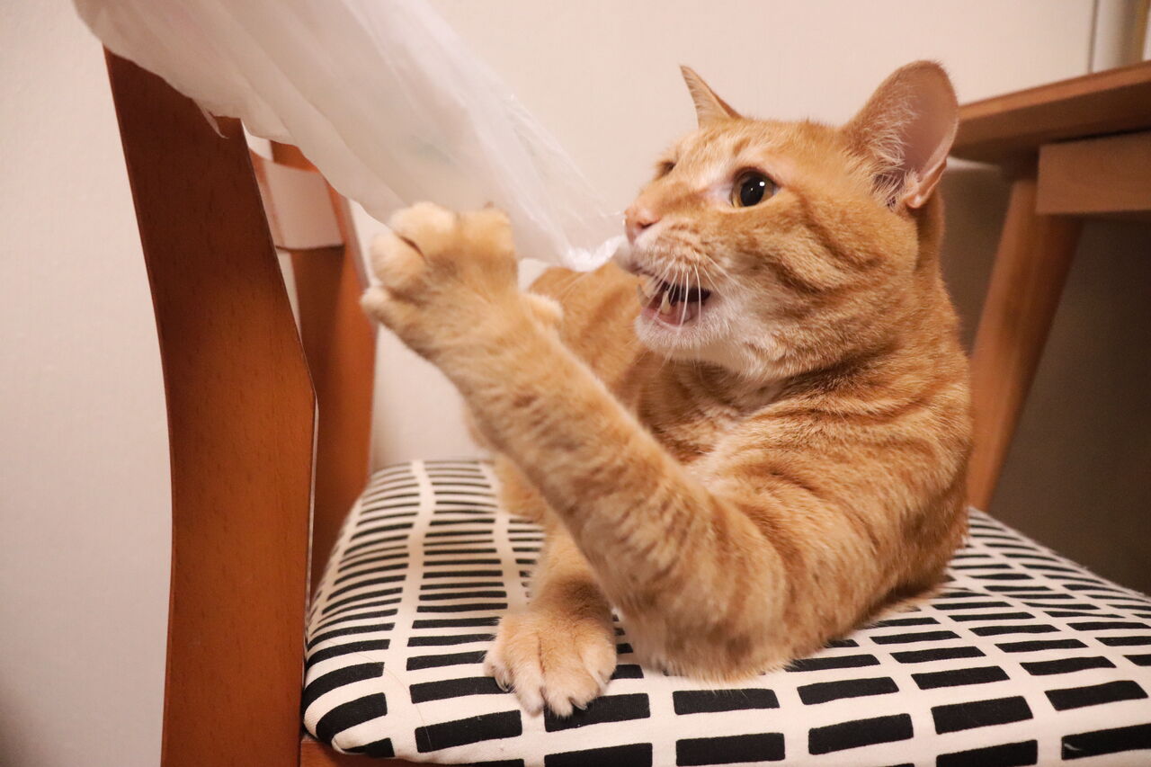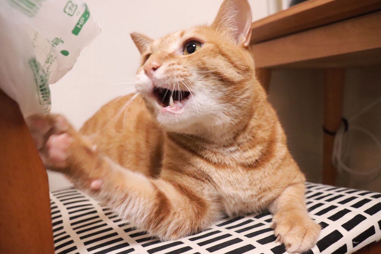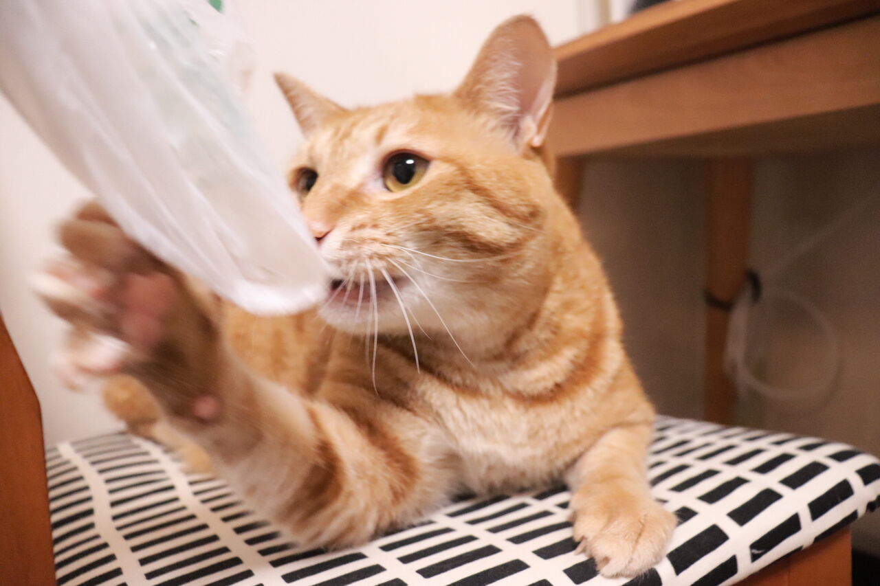 寝ながら遊ぶ猫