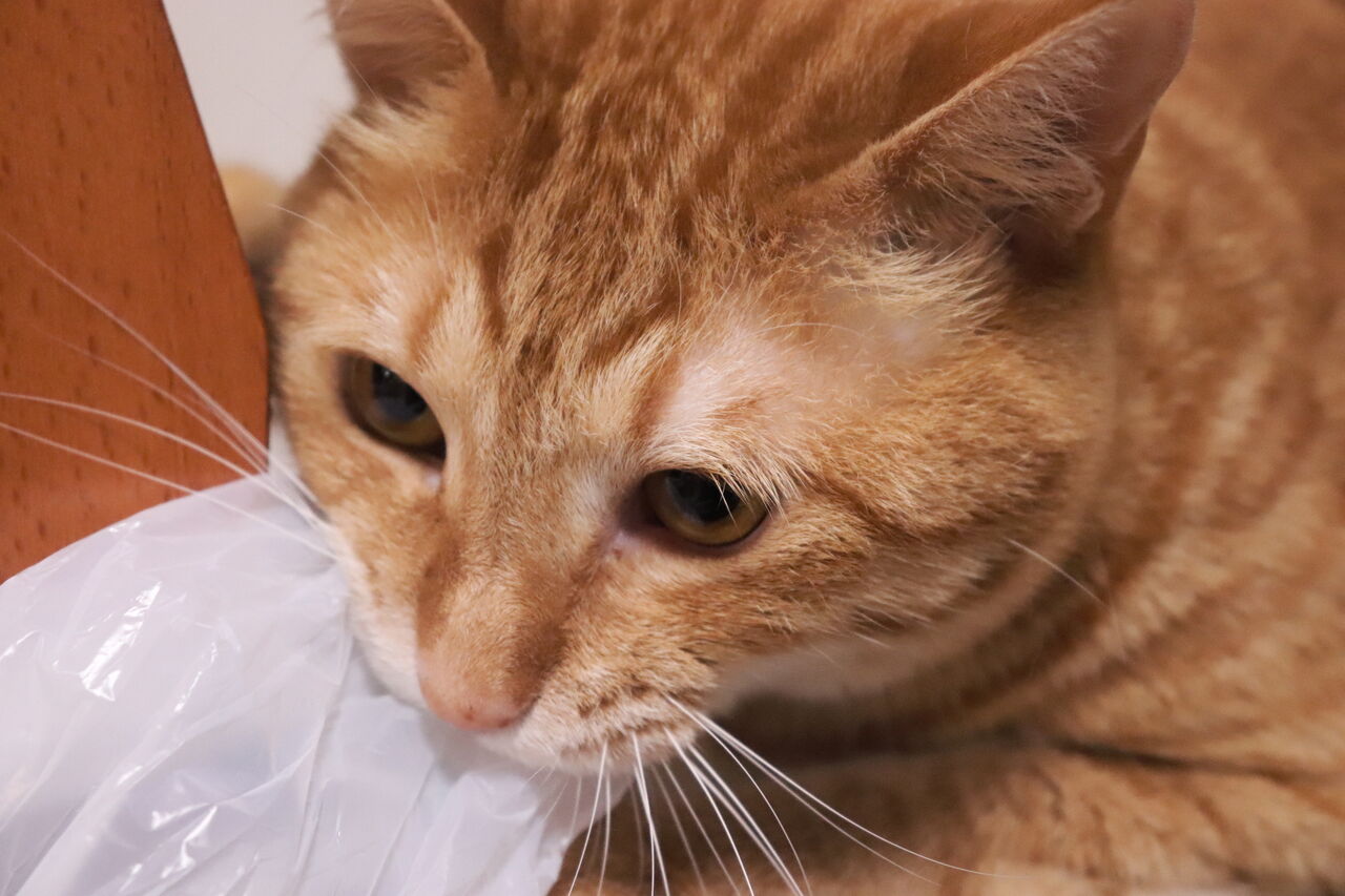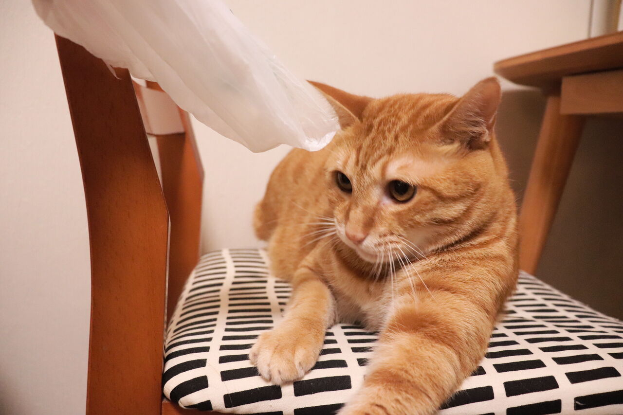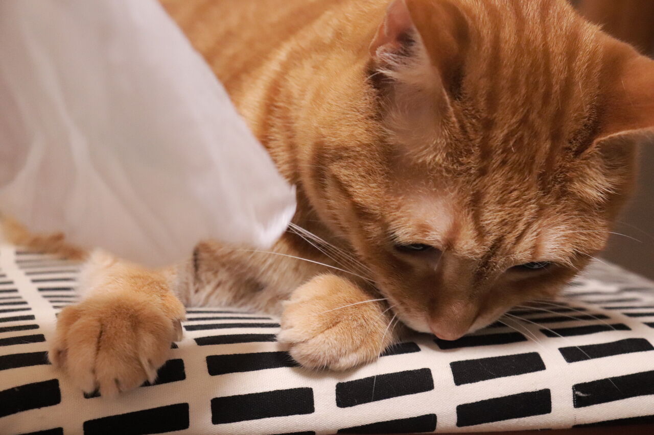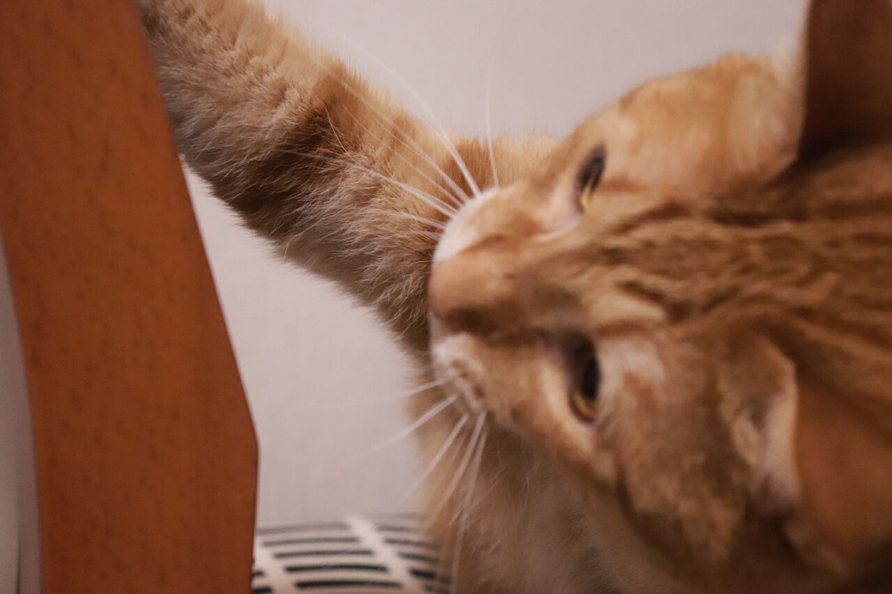 寝ながら遊ぶ猫